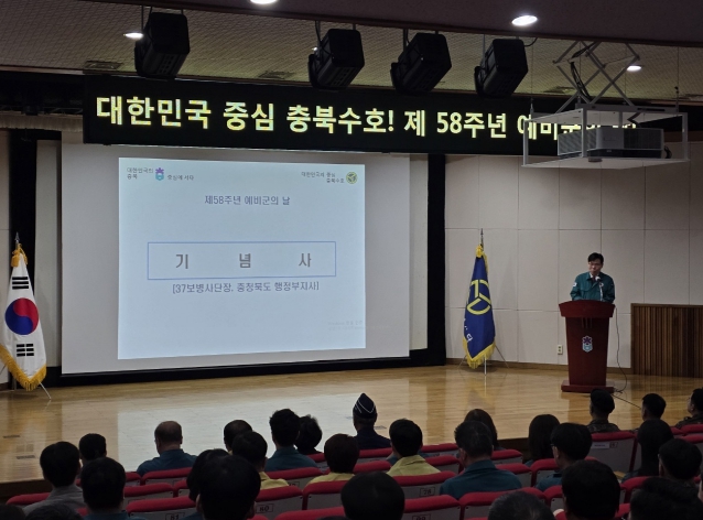 [파이낸셜경제=김기보 기자] 충북도는 4월 3일 충북미래여성플라자 대강당에서 창설 제58주년 예비군의 날을 기념하여 김영환 충북도지사, 김경수 제37보병사단장, 도내 예비군 지휘관 등 200여 명이 참석한 가운데 예비군 창설의 의의를 선양하고 사명감과 자긍심을 고취시킴으로써 자주국방과 완벽한 지역 향토방위 결의를 다지는 기념식을 개최했다고 밝혔다.