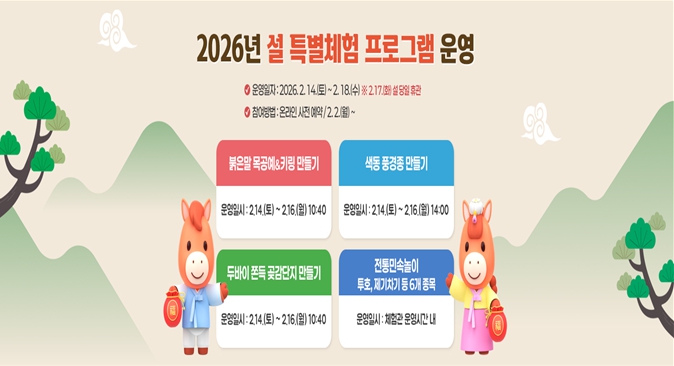 설맞이 특별체험 프로그램 운영으로 방문객들이 다양한 체험과 놀이를 통해 설날의 정취를 느끼며 즐거움을 만끽할 수 있을 것으로 기대된다.